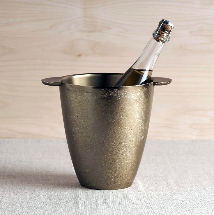 Our handmade antique brass wine bucket is perfect for holding a standard 750 ml bottle of favorite wine or champagne on ice. A sleek simple design compliments any style barware from vintage to contemporary motifs.