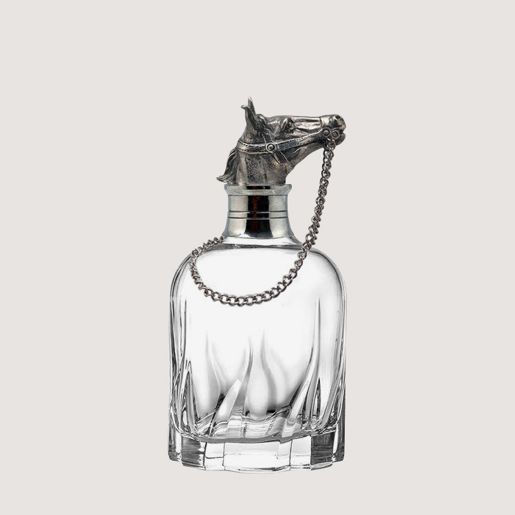Add a dash of fun and sophistication to your bar and show off your premium spirits in style with our lead free crystal whiskey decanter. A pewter motif in the shape of horse’s head caps off the decanter, instantly turning it inito a statement piece.