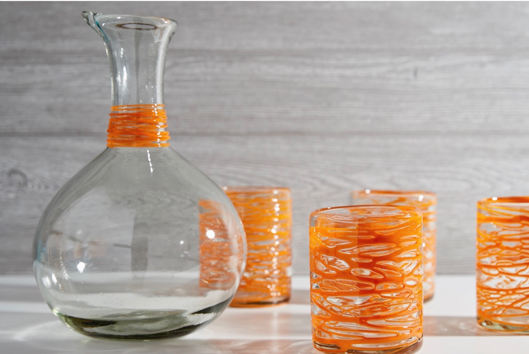 Swirl Carafe & 4 Glass Set | Handblown in Mexico