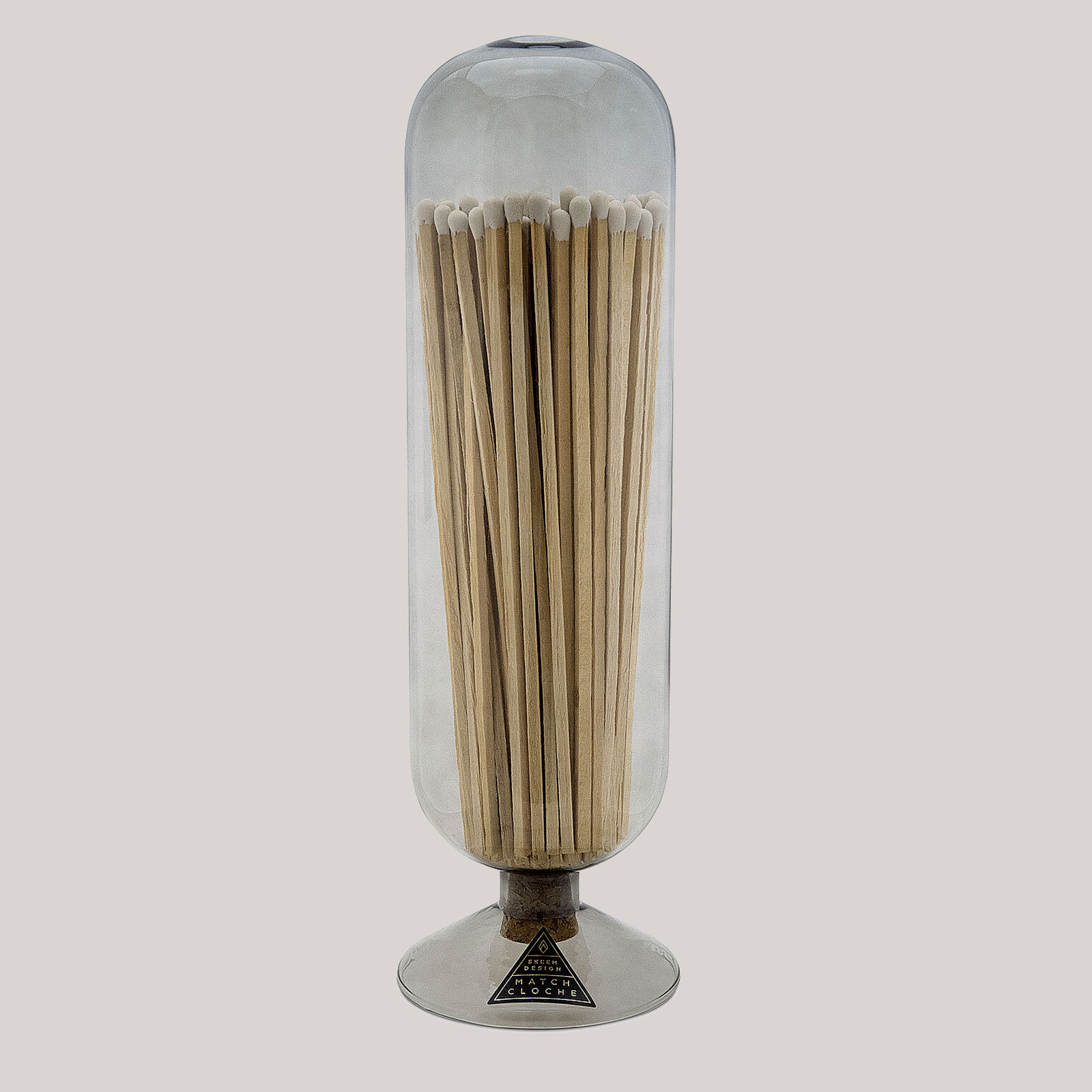 Add a touch of Jazz Era elegance to your contemporary look with our stylish match cloches. Handblown smoke-tinted glass fitted with a cork stopper stylishly holds 120 matchsticks in these vintage match holders.