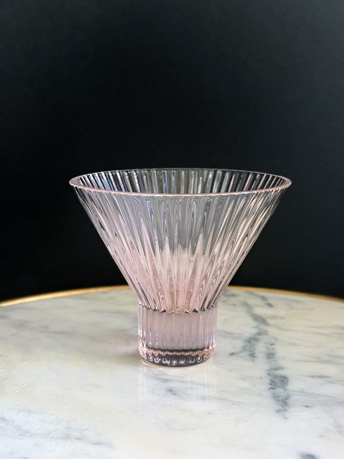 Sparkling ribbed glass blends function and beauty to enjoy your favorite beverage. Eye catching in translucent pink with an elegant shape that is easy to hold.
