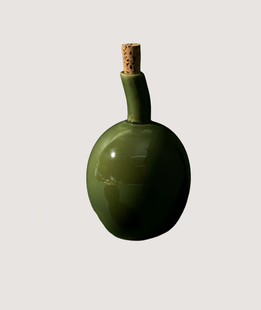 Crafted by a Tunisian maker along the Mediterranean Sea. Perfect for storing and serving your favorite oils, this bottle adds style and charm to your countertop.