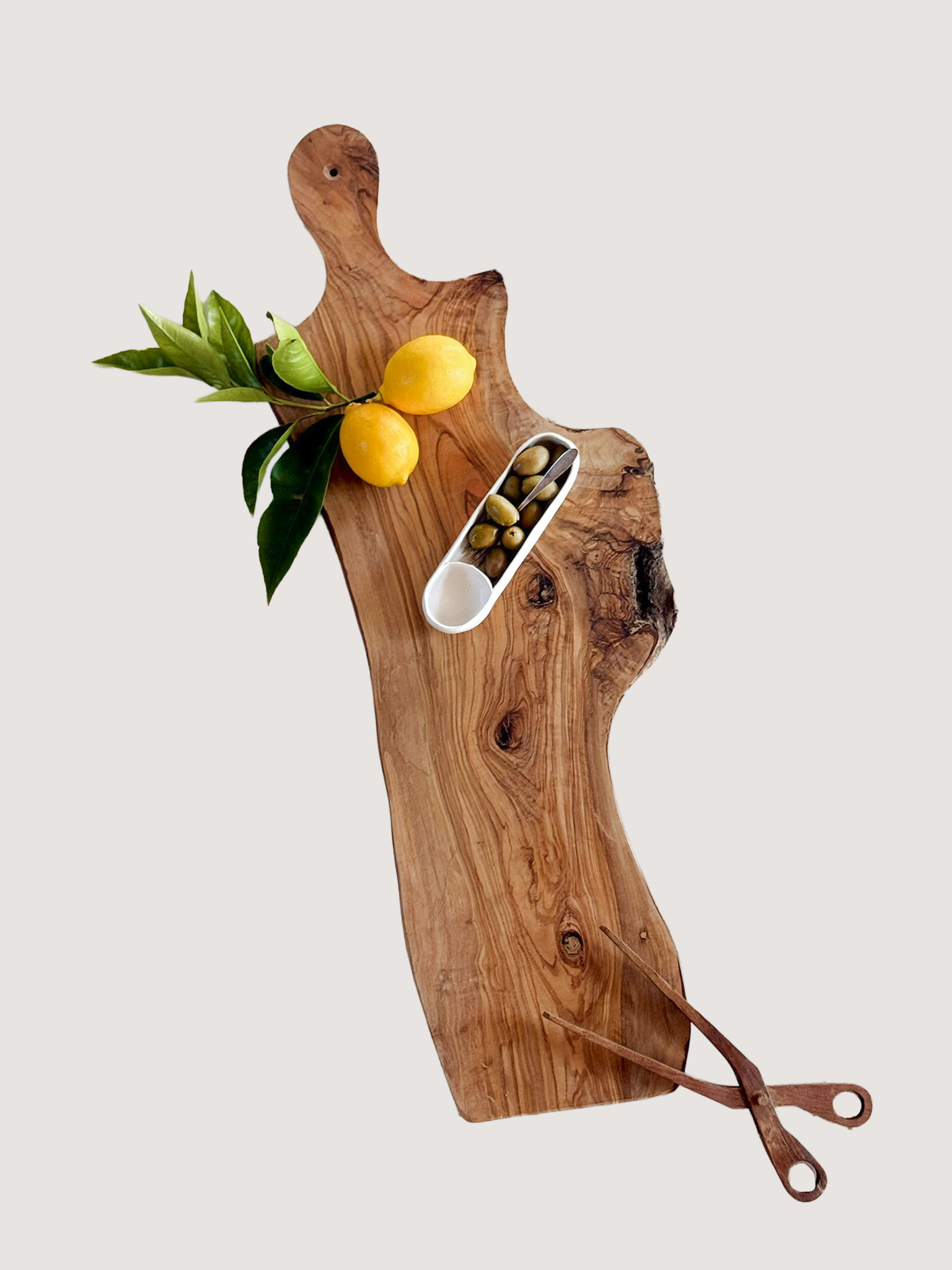 The perfect charcuterie board for your gathering. Each olivewood boardl is unique, handcrafted in a family owned woodshop in Sfax, Tunisia by artisans who use wood only from non-producing, aged, olive trees. Extremely hard wood and durable, each wood bowl is unique in its shape and stunning markings.